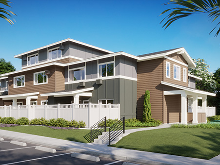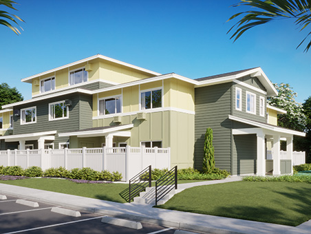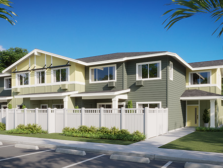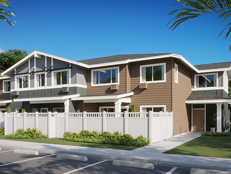 Keʻolu is the newest affordable condominium townhome series at Koa Ridge, offering thoughtfully designed one-, two-, and three-bedroom floor plans ranging from 565 to 896 square feet of living space. Each home features open-concept kitchens, living, and dining areas—perfect for those seeking comfort, functionality, and a connected lifestyle.